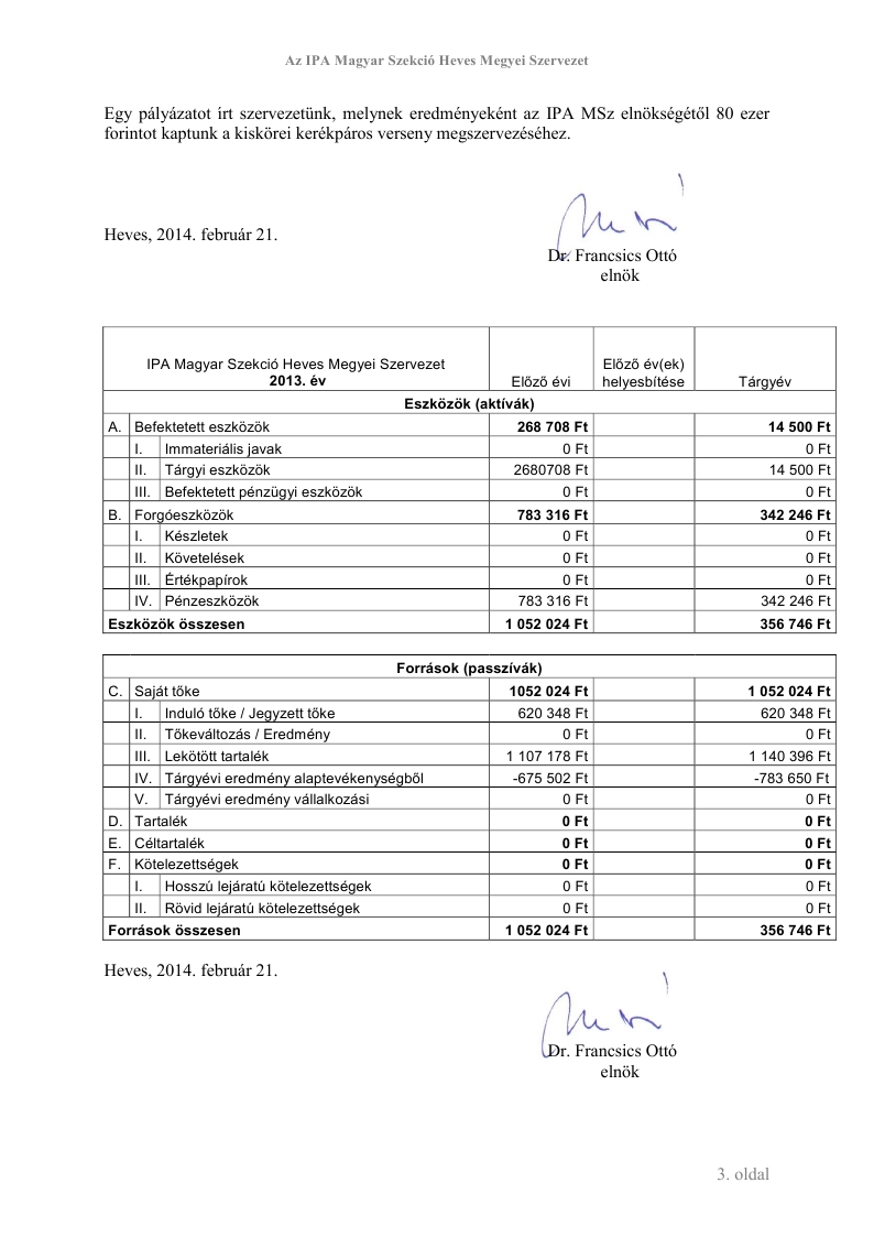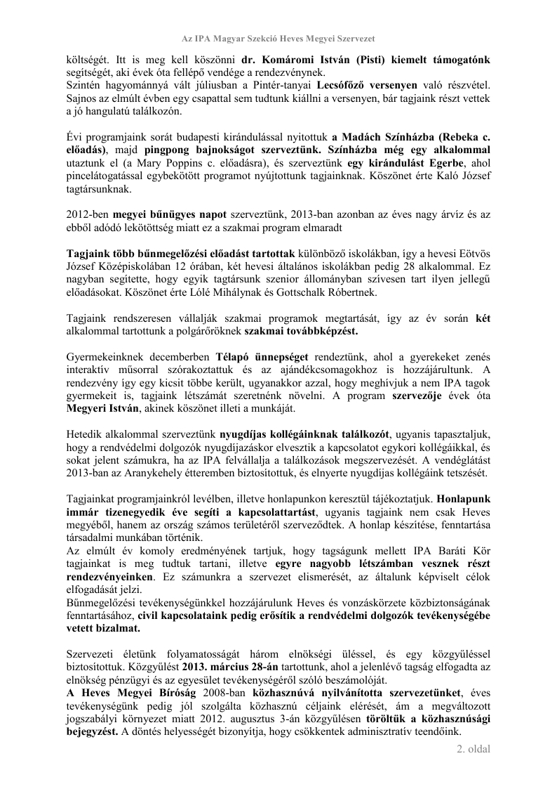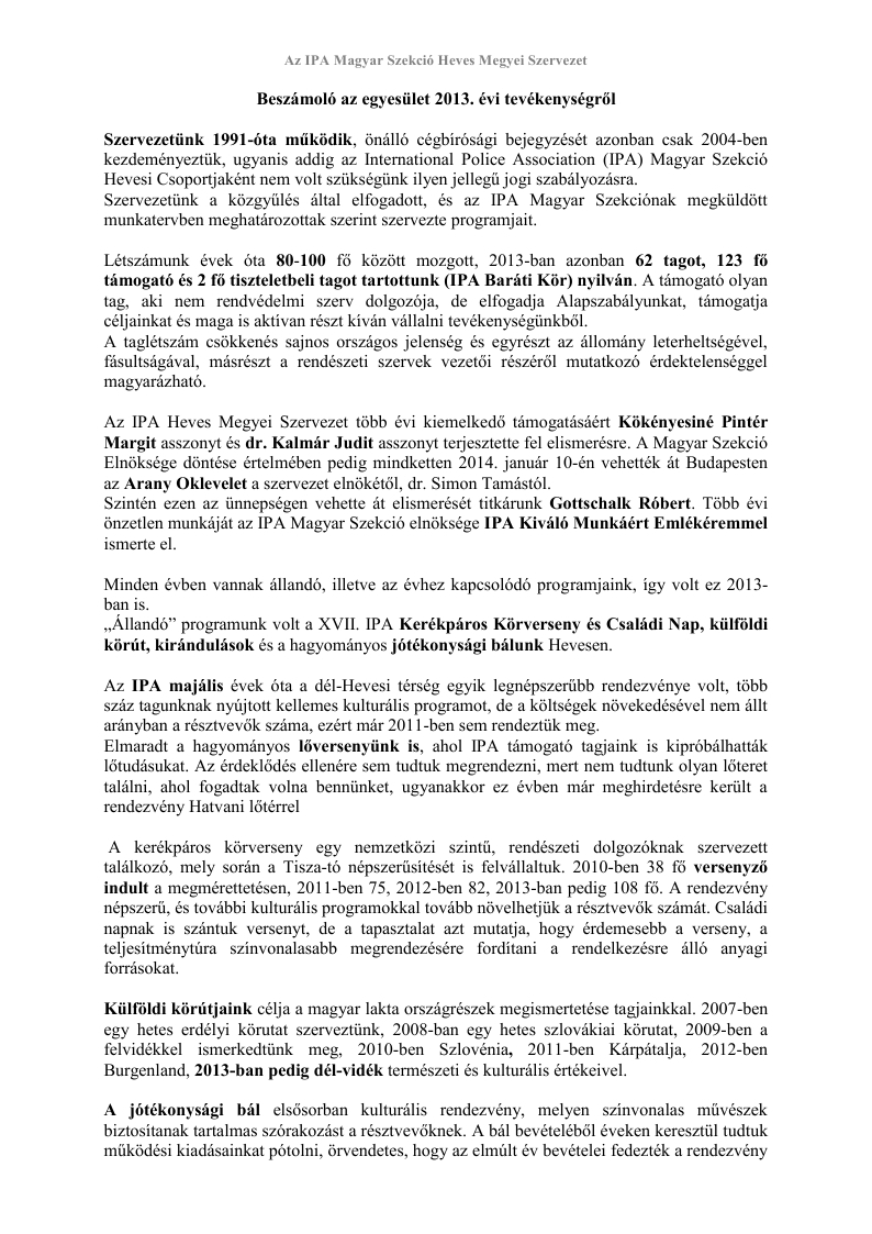 Éves közgyűlésünket 2014. március 27-én megtartottuk és elfogadtuk az elnökség beszámolóját a végzett tevékenységről, a 2013-as év kiadásairól és bevételeiről. A résztvevők támogatták 2014-es terveinket, és ehhez a pénzügyi tervet is jóváhagyták.