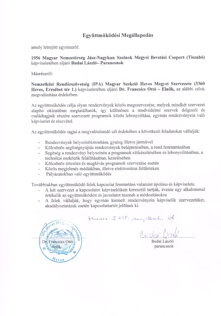 Együttmüködési megállapodás a nemzetőrséggel