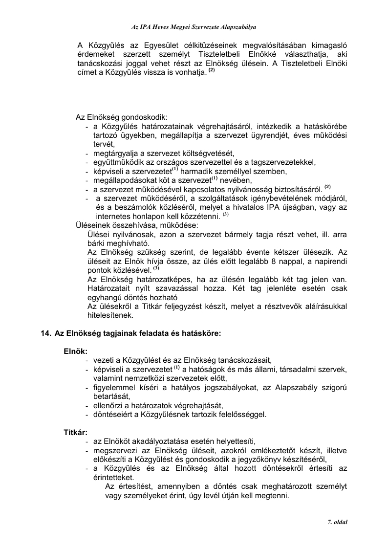 - a szervezet működéséről, a szolgáltatások igénybevételének módjáról, és a beszámolók közléséről, melyet a hivatalos IPA újságban, vagy az internetes honlapon kell közzétenni. (3)
